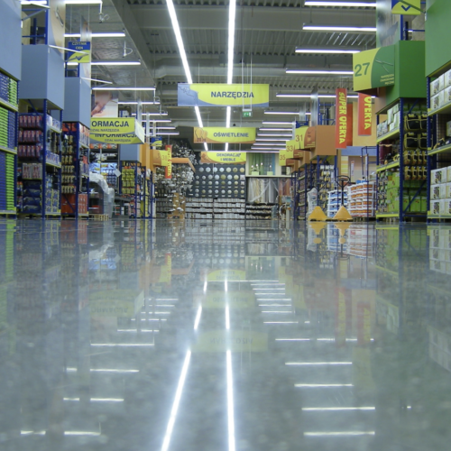 Zastosowaliśmy system terrazzo exclusive na bazie żywicy o zwiększonej odporności na UV, pozbawionej lotnych związków organicznych. Do wykonania posadzki zastosowano kruszywo z czystego kwarcu, poddane optycznemu oczyszczaniu (selekcji) przy użyciu specjalistycznego urządzenia, co pozwoliło uzyskać bardzo jednolitą barwę i pełną przejrzystość materiału System zapewnia trwałość, stabilność kolorystyczną oraz spełnia wymagania dla obiektów publicznych. Prefabrykaty schodów wykonano z tego samego materiału, co pozwoliło zachować pełną spójność. Dylatacje ograniczono do minimum, zastosowano pola bez dylatacji o powierzchni kilkuset m².